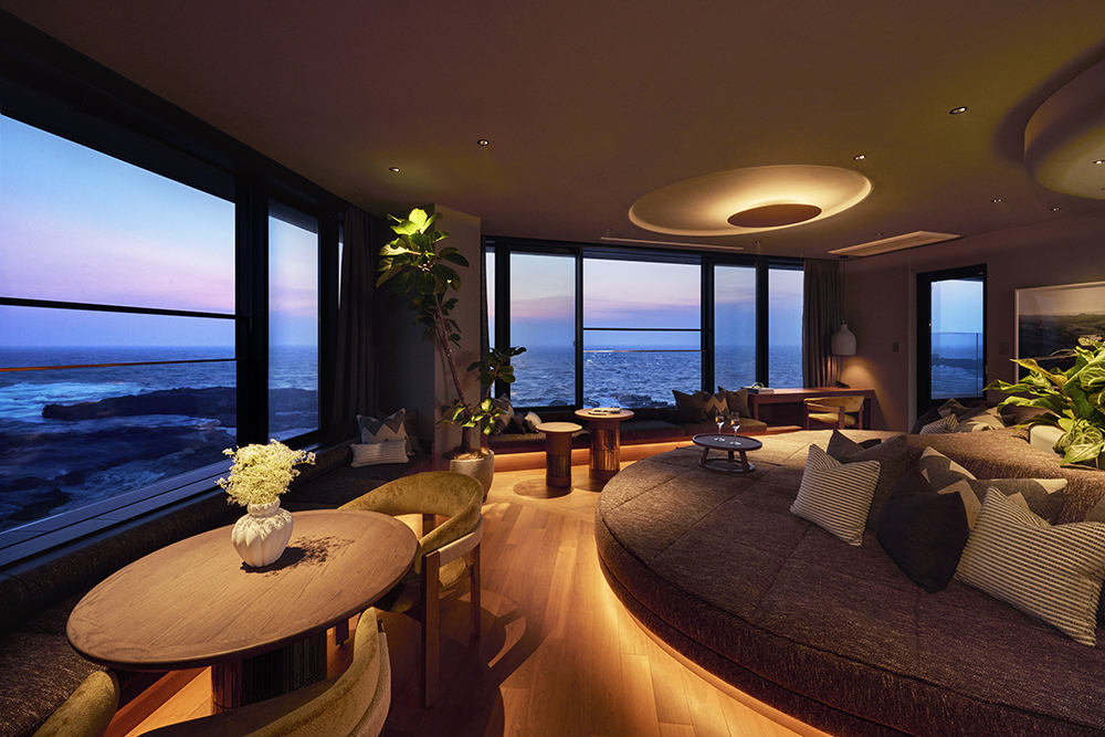 客室は、城ヶ島の大地を映し出すかのようなインテリア。