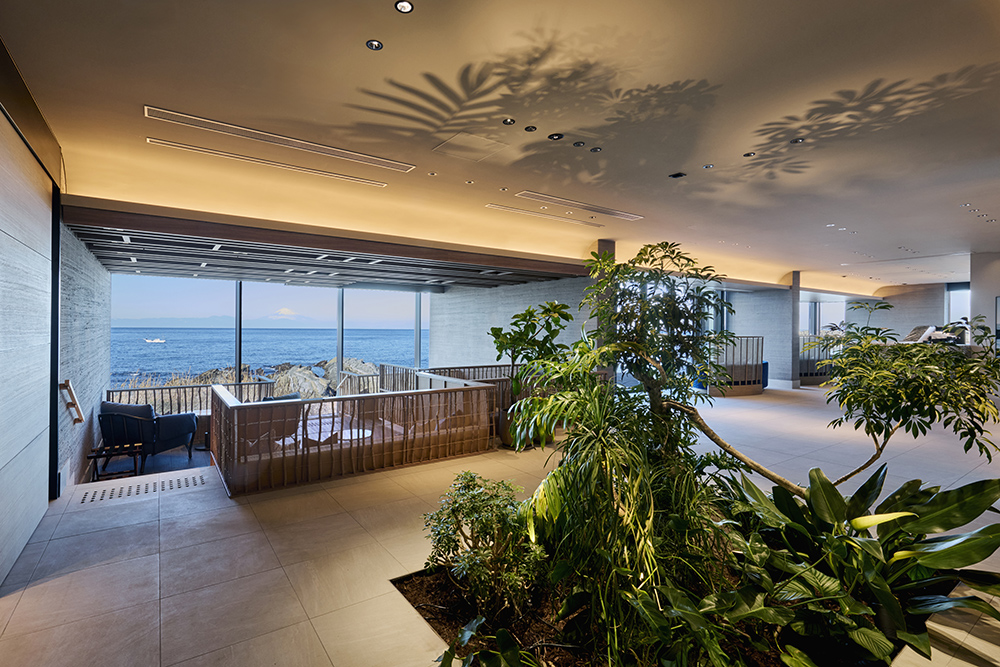 昼は岩礁に打ちつける波を、夕刻には富士山の隣に沈みゆく夕陽を、そして夜には灯りの揺らめきと満天の星空を眺めながら、印象的なひとときをお過ごしくださいませ。